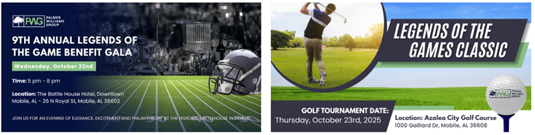 • Attendees will be able to mingle with you our Alabama and Auburn Football Legends